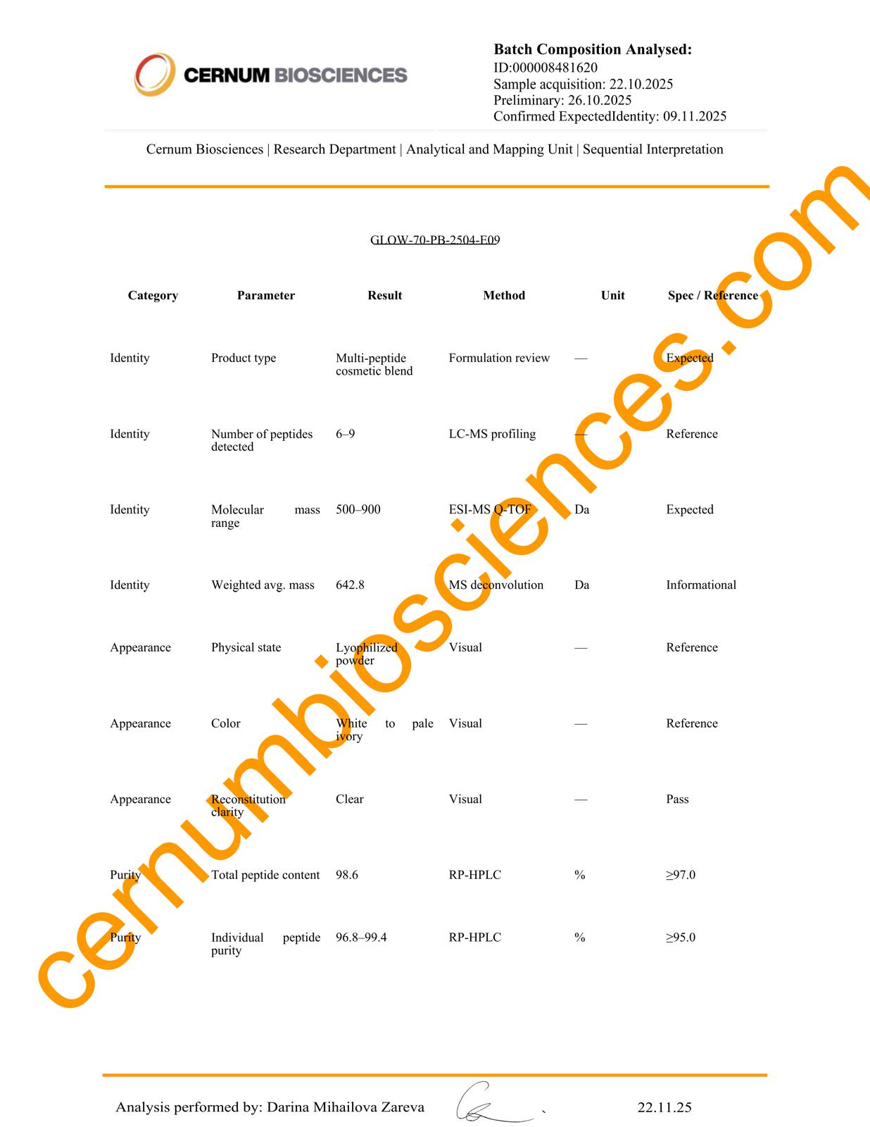 At Cernum Biosciences, we are committed to leading quality. Every product batch is routinely submitted for independent, third party laboratory testing. Tests are conducted with a wide range of different independent testing facilities. Results are fully transparent and updated on a weekly basis.