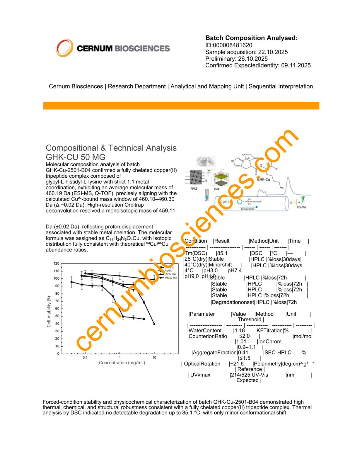 This synthetic GHK-Cu is designed for research use only and is not intended for human or veterinary application.