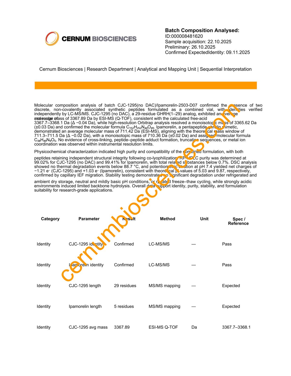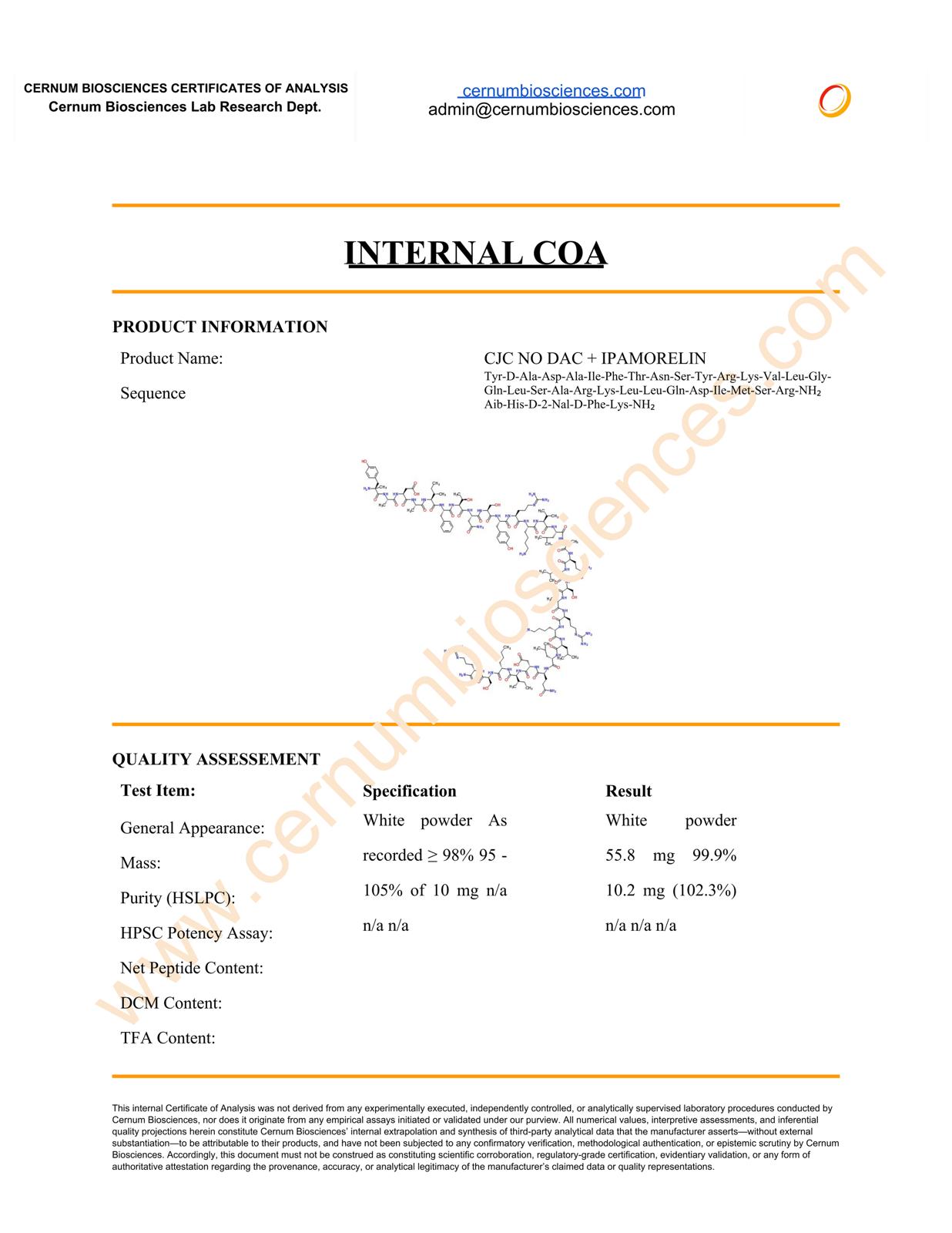 With >99% purity, verified by independent third-party analysis, our CJC-1295 NO DAC with Ipamorelin is lab-tested for consistency and integrity. You can view full testing details here: View Analysis. We supply only lab grade peptides via our trusted peptide source, committed to excellence in research.